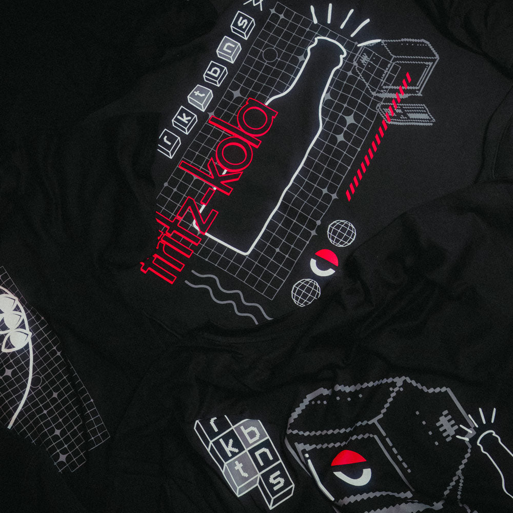 Die fritz-kola x rktbns Kollektion - immer wach, immer auf Sendung! In Kollabo mit rktbns präsentiert fritz-kola eine limitierte Kollektion, die fritz-kola und den rktbns Kosmos miteinander verbindet. Alle Teile in unserer Lieblingsfarbe schwarz mit roten Highlights, im oversized Unisex-Schnitt und in 100% Bio-Baumwolle.